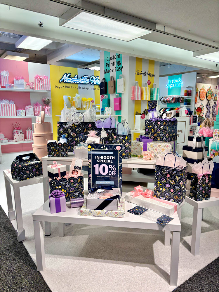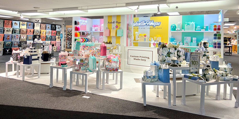 Nashville Wraps is a wholesale packaging supplier serving retail stores, gourmet food brands, candy makers, and gift businesses across the country. We offer shopping bags, boxes, tissue, ribbon, bows, gift wrap, and cellophane, along with custom printing that allows businesses to add their logo and branding directly onto packaging. Many of our products are made in the USA using recycled materials as part of our Green Way eco-friendly line.