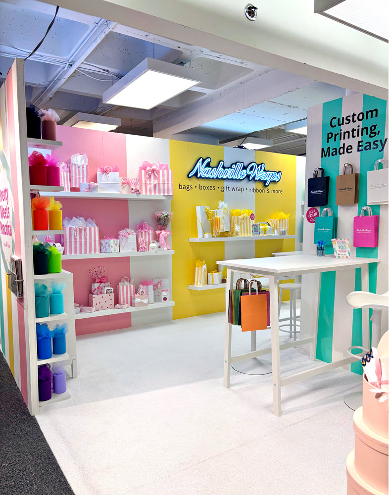 For this year’s show, we introduced a completely refreshed booth design inspired by the people we serve every day. Our customers are smart retailers, so we built a space that felt like a real boutique rather than a traditional trade show display. We wanted attendees to see our packaging in action and easily imagine it in their own shops, stores, and gift boutiques. Visitors could walk through the space, explore product groupings, and touch and handle the packaging just as their customers would.