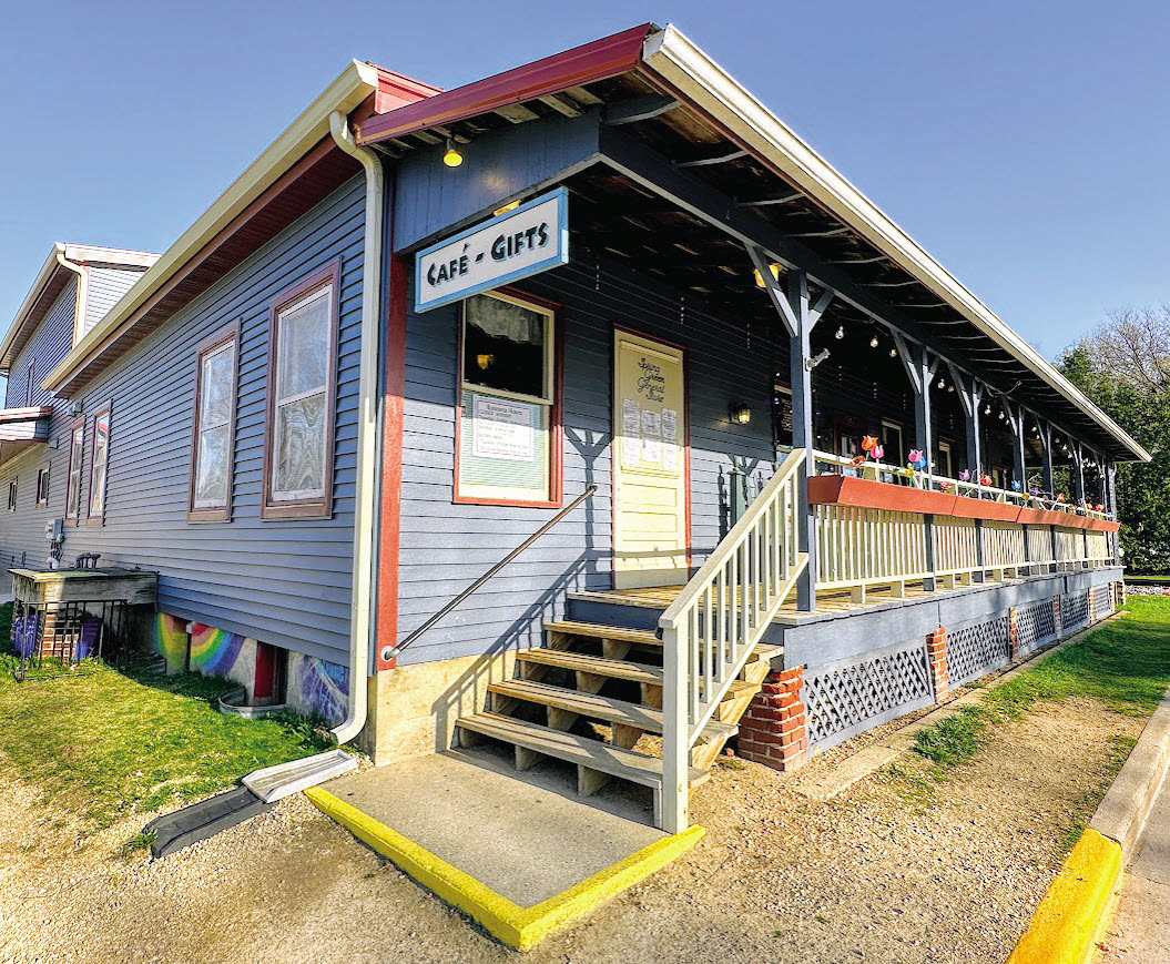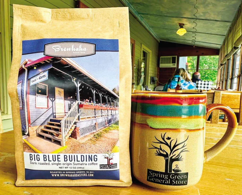 “We have the original maple flooring, big, huge wooden beams, and as much of the original character we could keep. We have a full-length front porch (with a swing) and line the whole thing with flower boxes, so when you walk up in the summer, you see the colorful flowers in front of a very blue building,” she said. “For years, we told people, ‘It’s the big blue building by the railroad tracks,’ and now I sell my private-label coffee — named appropriately ‘Big Blue Building Blend.’”