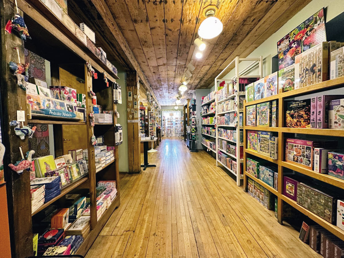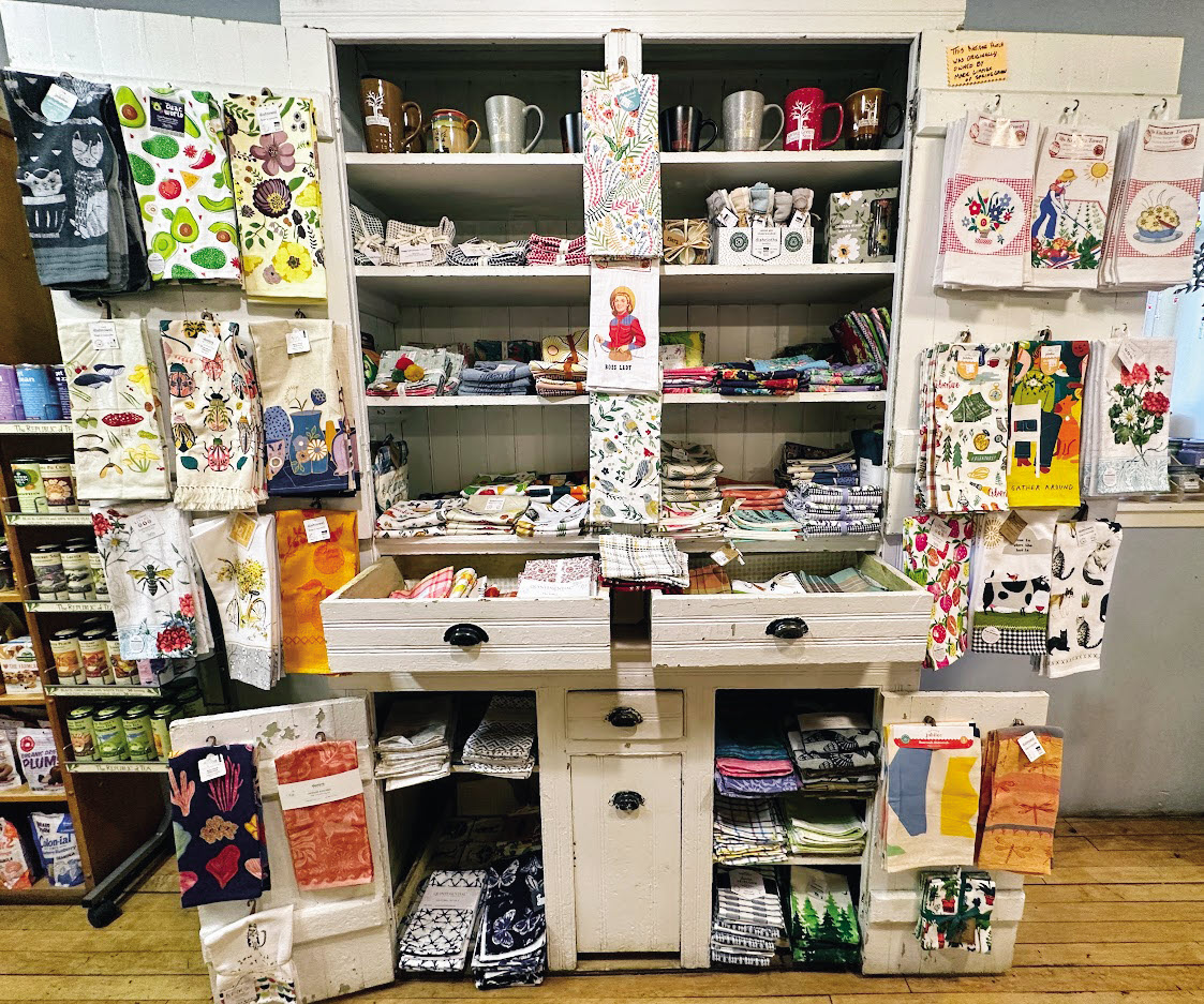 Spring Green General Store has a small body care section with bar soaps from European Soaps and lotions from Deep Steep. “Gifts of all sorts is our broadest retail category (like anything that remotely looks like a stocking stuffer) from the likes of Chronicle and Kikkerland, dish towels from Danica, eco-friendly items from Full Circle, magnets from Ephemera, custom mugs, decorative items, holiday items (we are trying to build our Halloween business), and we have a ‘PG’ section (sometimes we get in trouble for it, but one of the Fun Club puzzles is the bestselling item in our online shop),” Karin said.